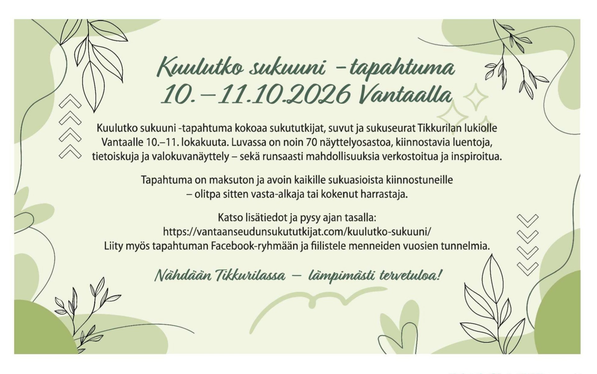 Kuulutko sukuuni -tapahtuma 10.–11.10.2026