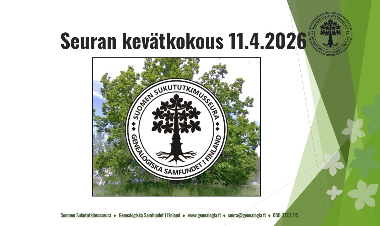 Suomen Sukututkimusseura järjestää yleisen infotilaisuuden vapaaehtoistoiminnasta torstaina 7.5.2026 klo 18.00–19.00. Tilaisuudessa kerrotaan Seuran digitaalisten palveluiden täydentämiseen liittyvästä toiminnasta, kuten HisKi-tallennuksesta, henkikirjojen indeksoinnista Henkikirjahakua varten ja Hautakivitietokannan täydentämisestä. Lähtemällä...